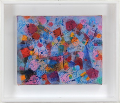 画面に散らばった円や方形が、ケンカせずに仲良く、あるいは緊張感を持って共存出来る様に画面を作って行きたい。 そして楽しさ、もしくは危うさのようなものも感じさせられる様になれたら嬉しいと思っています。 彼方立てれば此方が立たず、そんな繰り返しの中からなにやら自分の方向が見えてくる時があります。 そういう時間を持てることが、絵を描くことを続けていける芯になっている様に感じています。